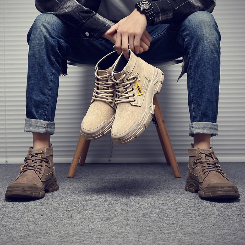 Men's British Style Tooling Boots Trend High-Top Shoes Casual Breathable Short Martin Boots