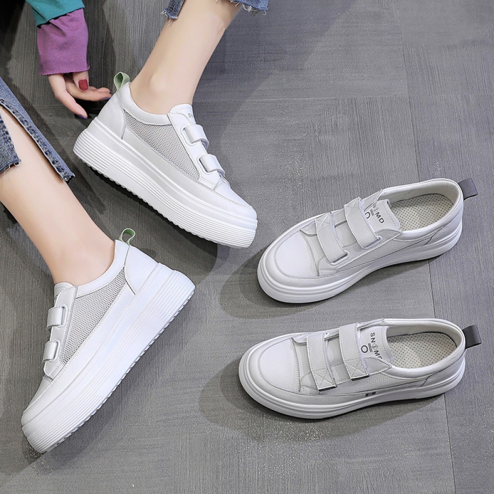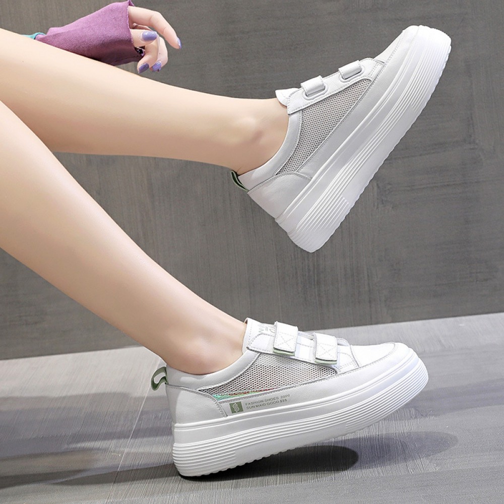 White Women's Spring New Flat-Bottom Heightening Shoes Thin Casual Hollow Breathable Shoes